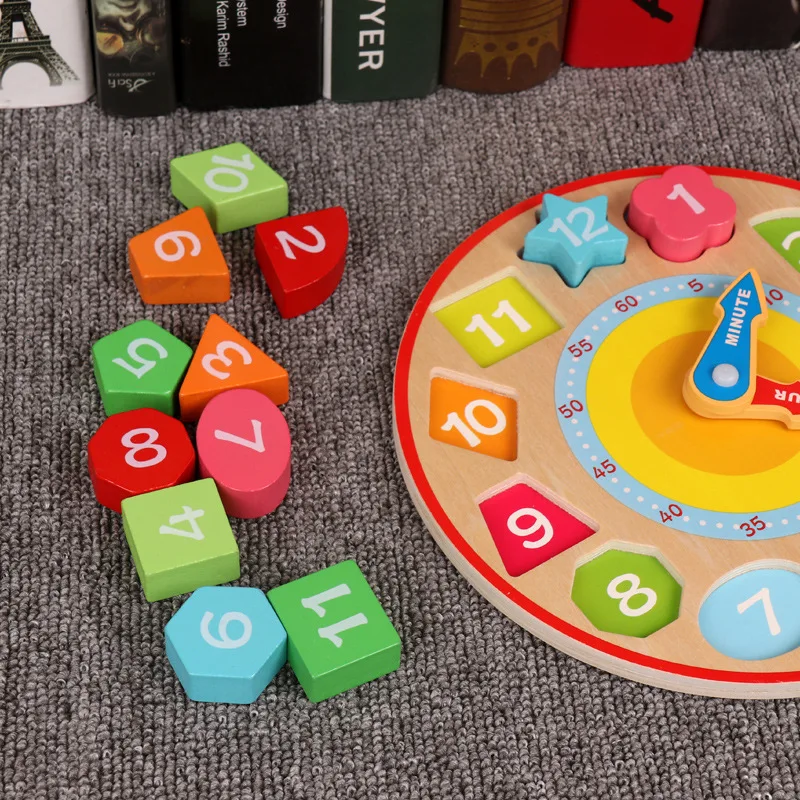 Children with Numbers Logarithmic Clock Shape Jigsaw Puzzle Large Pieces Cognitive Wooden Puzzle Ed