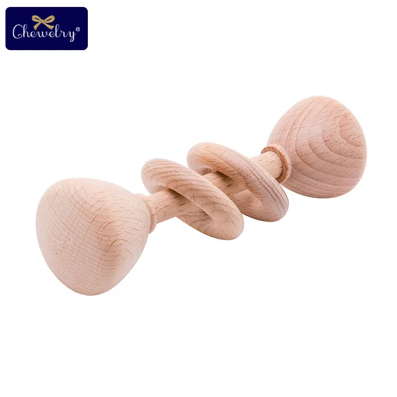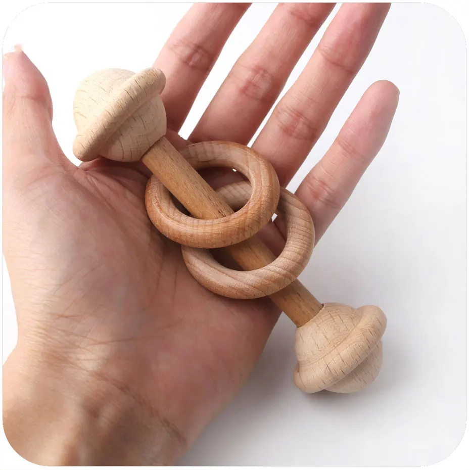 1PC Baby Teether Toys Beech Wooden Rattle Wood Teething Rodent Ring Musical Chew Play Gym Montessor