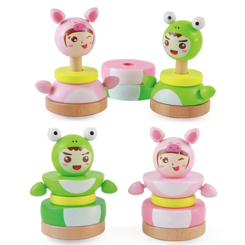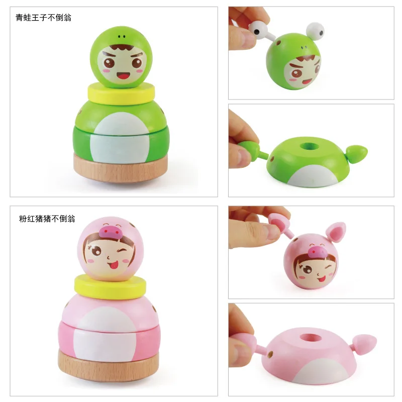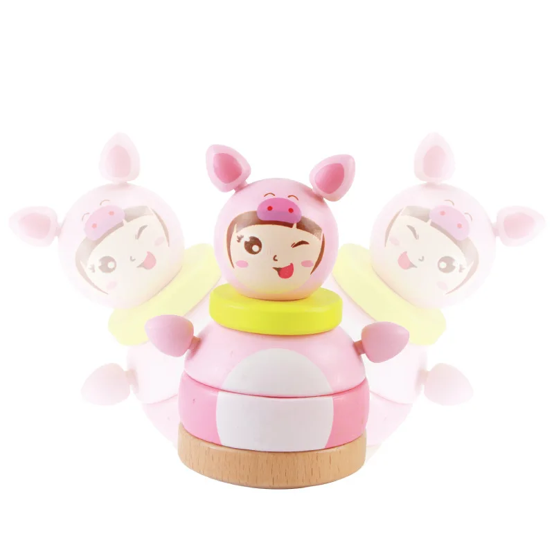 Pink Pig Tumbler Wooden Toy Infants Baby Children's Early Childhood Educational Building Blocks Toy