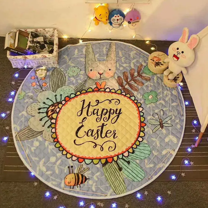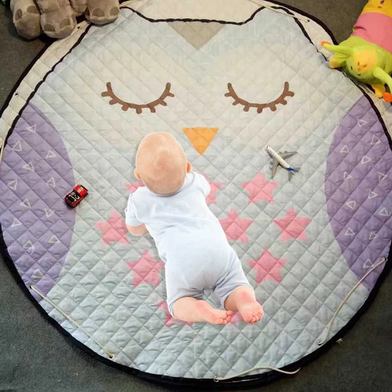 150CM Cartoon Round Mat Kids Toys Storage Bag Sundries Pouch Baby Crawling Blanket Anti-slip Cotton