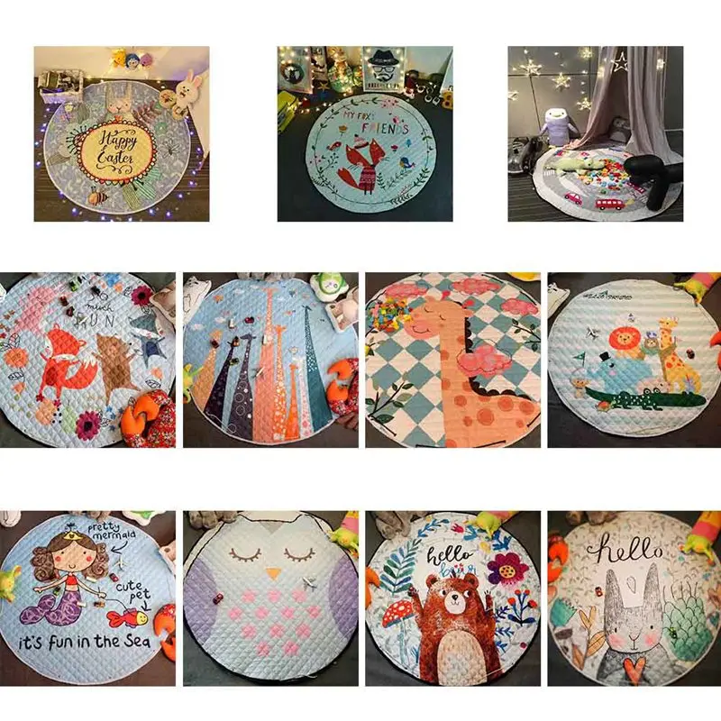 REVIEW TOP SELLER 150CM Cartoon Round Mat Kids Toys Storage Bag Sundries Pouch Baby Crawling Blanket Anti-slip Cotton