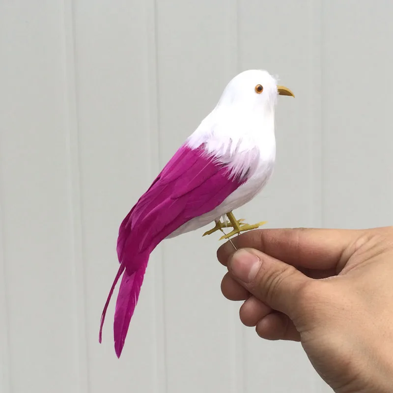 about 15cm hot pink &white feathers bird Handmade art modelsimulation bird garden decoration toy Xm