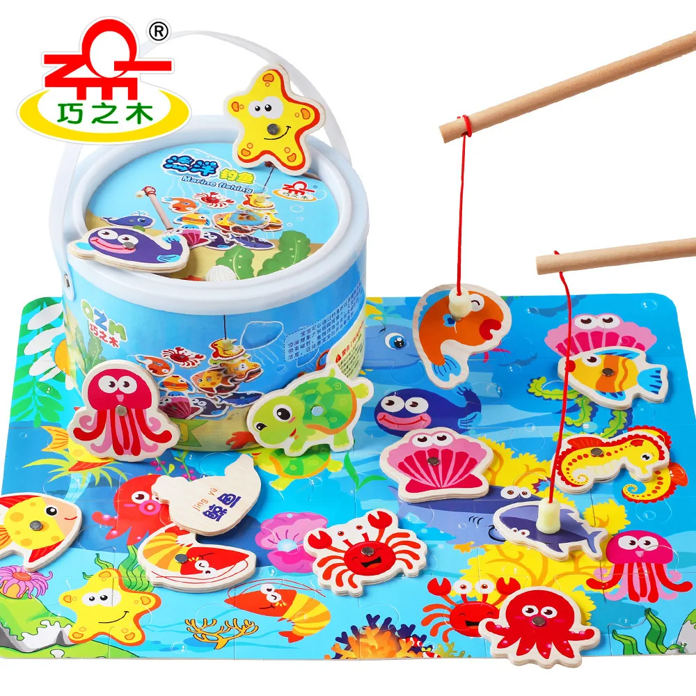 HOT Sale QZM Barrel Double Poles Oceans Fishing Toys Children Boys And Girls Hand-Eye Coordination Toy 0.5