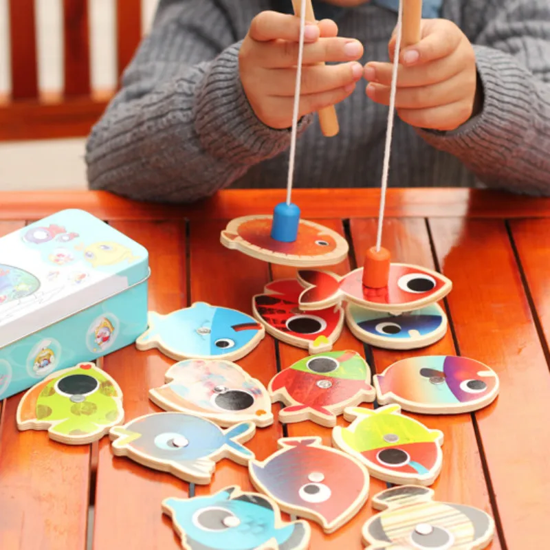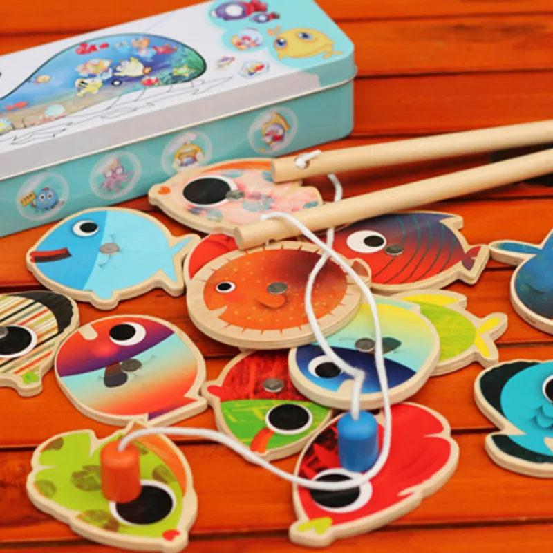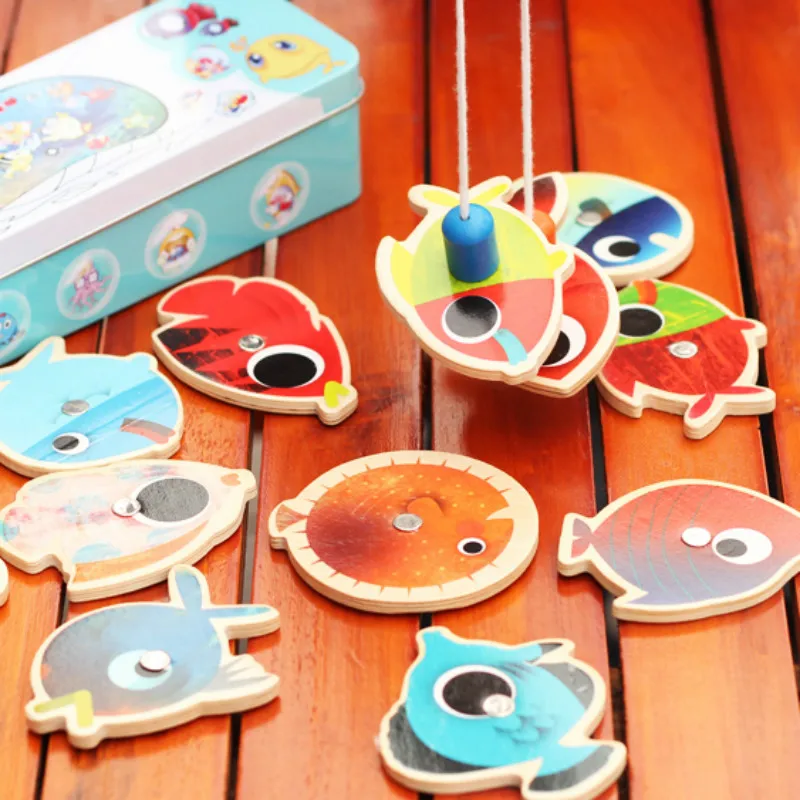 HIGH QUALITY 1set Tin Color Magnetic Double Pole Fishing Toy Baby Parent-child Interactive Games Puzzle
