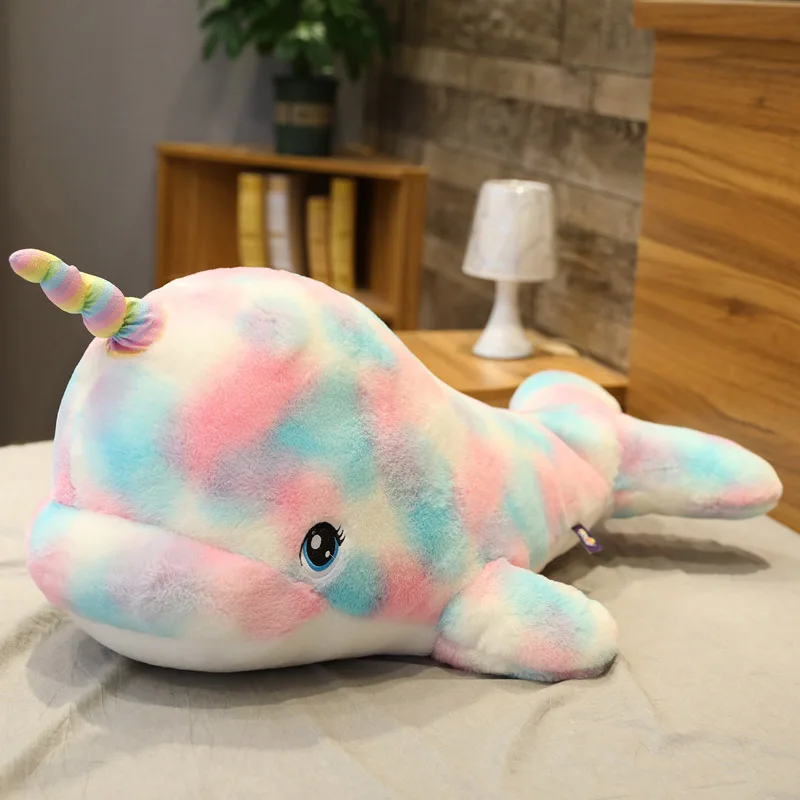 70/90CM Colorful Narwhal Plush Toy Whale Stuffed Doll Soft Plush Pillow Cushion Birthday Gift For K